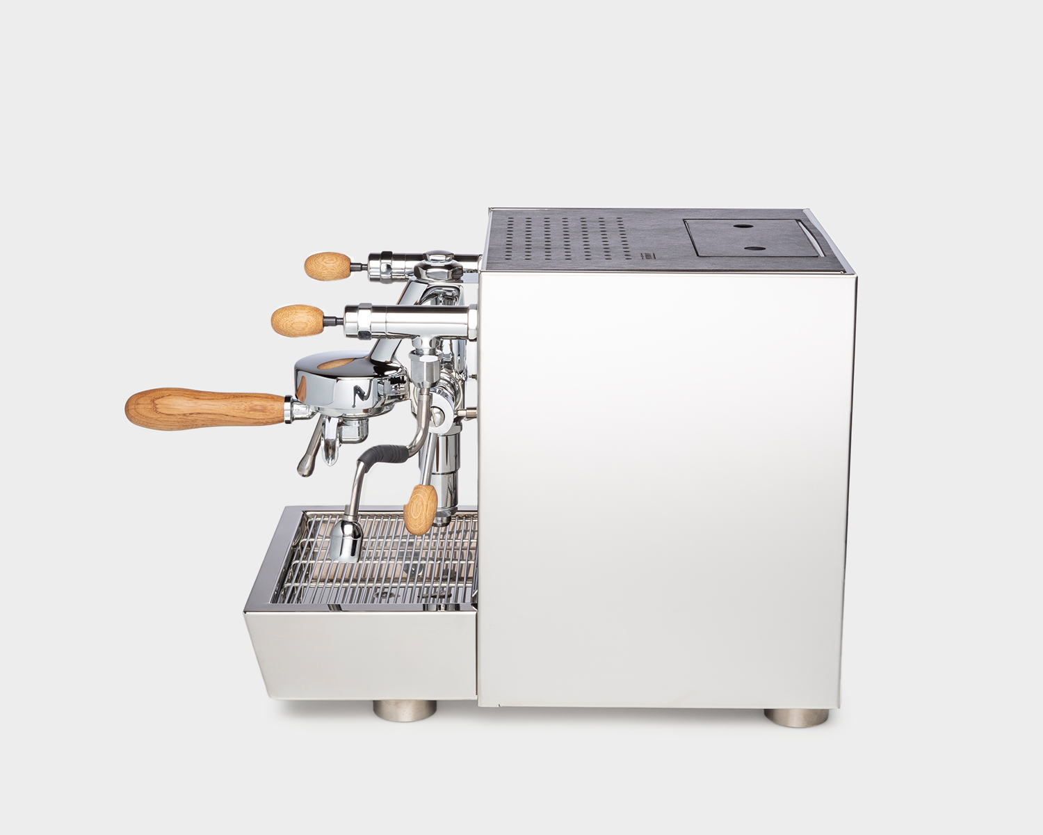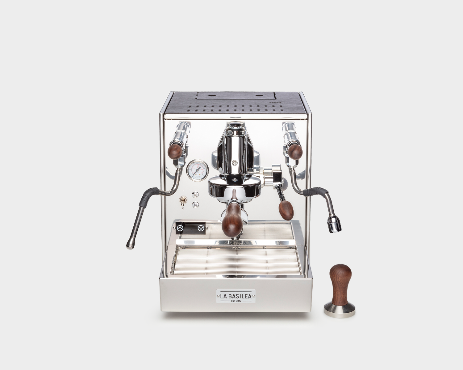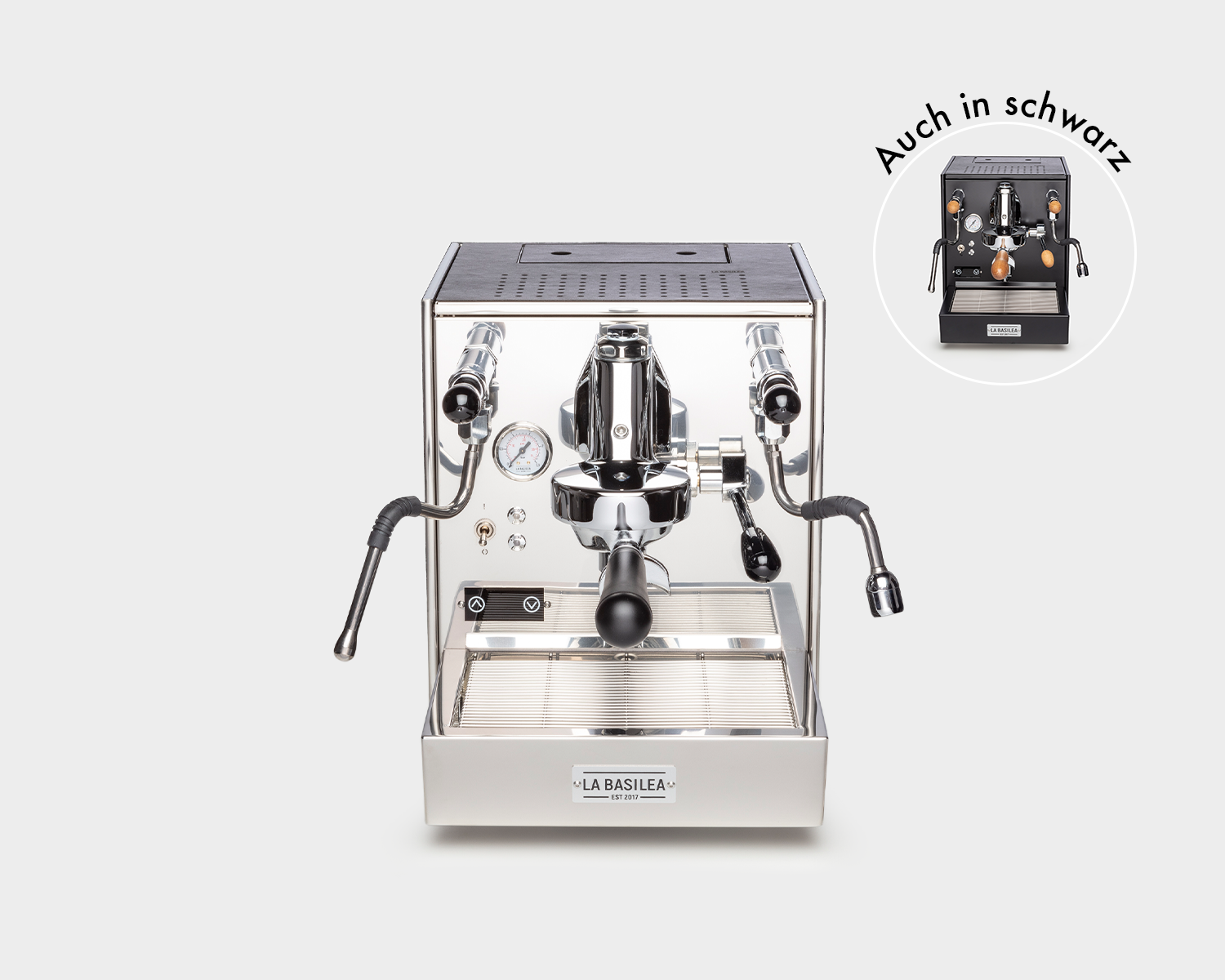 Diese exquisite Espressosiebträgermaschine, ist perfekt für den gehobenen Einsatz im Heim- und Officebereich. Ob Espresso, italienischer Kaffee, Cappuccino, Latte Macchiato oder Café Crema, das Ergebnis ist perfekt. Auch der Milchschaum gelingt prima. La Basilea ZERO-L1 ist eine 1-gruppige Espressomaschine mit manueller Brühgruppe E61. Diese Siebträgermaschine kann mit Wassertank und mit Vibrationspumpe bezogen werden. Bei der La Basilea ZERO-L1 funktioniert die Boiler-Temperatur-Steuerung über den PID Controller (proportional-integral-derivative Controller). Auch an die Wartung und Pflege der Maschine hat La Basilea wieder gedacht. Eine intelligente Konstruktion erlaubt Wartungen und Reparaturen einfach und schnell durchzuführen. Mit ca. 60 Bezügen pro Tag ist diese Maschine ausgelegt. In unseren persönlichen Tests erlauben die Maschinen auch durchaus mehr, ohne dass die Qualität des Kaffees nachlässt. Die La Basilea ZERO-L1 Siebträgermaschine von PRO Kaffeemaschine AG überzeugt wieder durch die E61 Brühgruppe und besticht daher durch hohe Qualität.